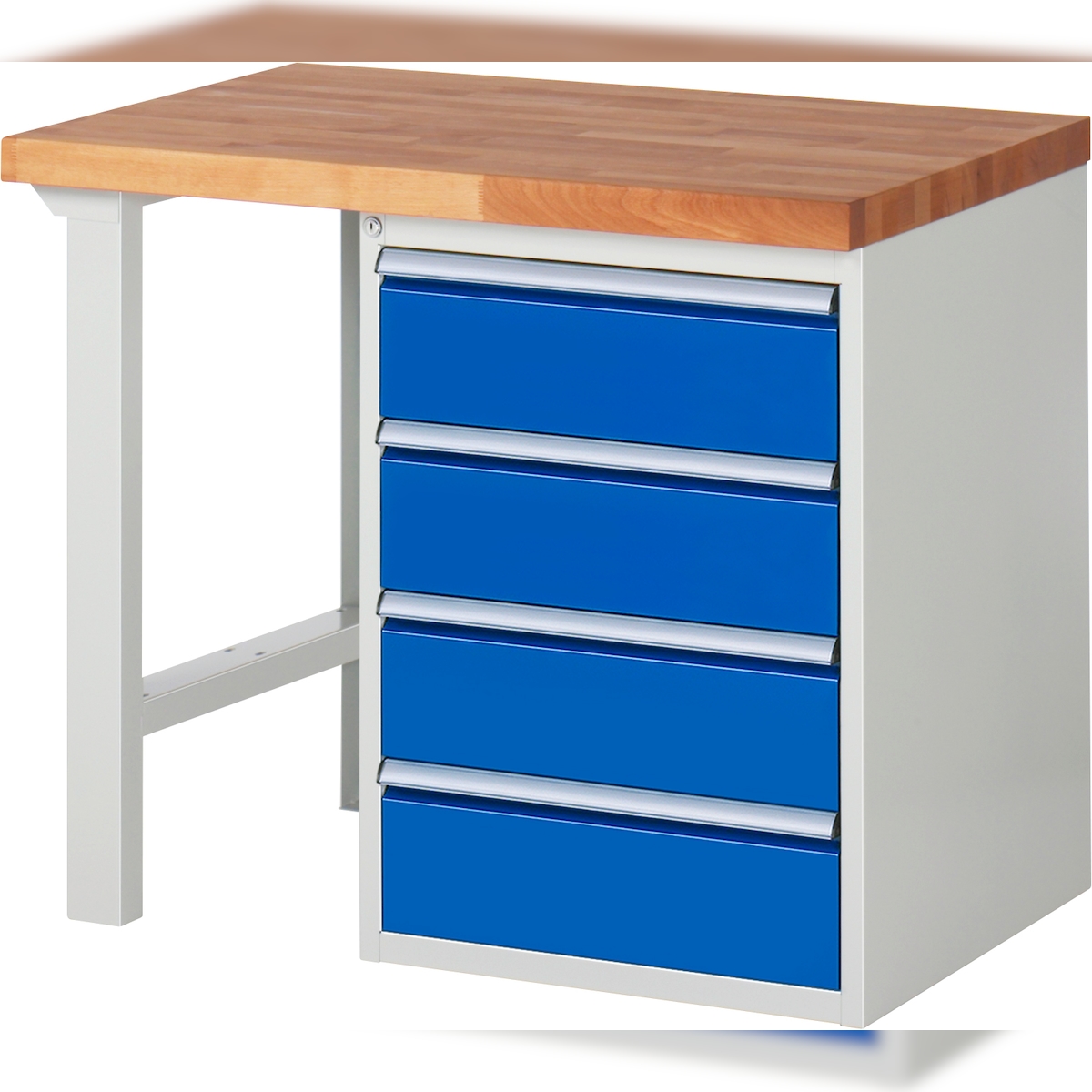 PROREGAL Werkbank Serie 7000 - Modell 7509 | HxBxT 89x100x90cm | 4x Schublade | Schubladenmaße 4x180mm | Lichtgrau | Arbeitstisch Werktisch