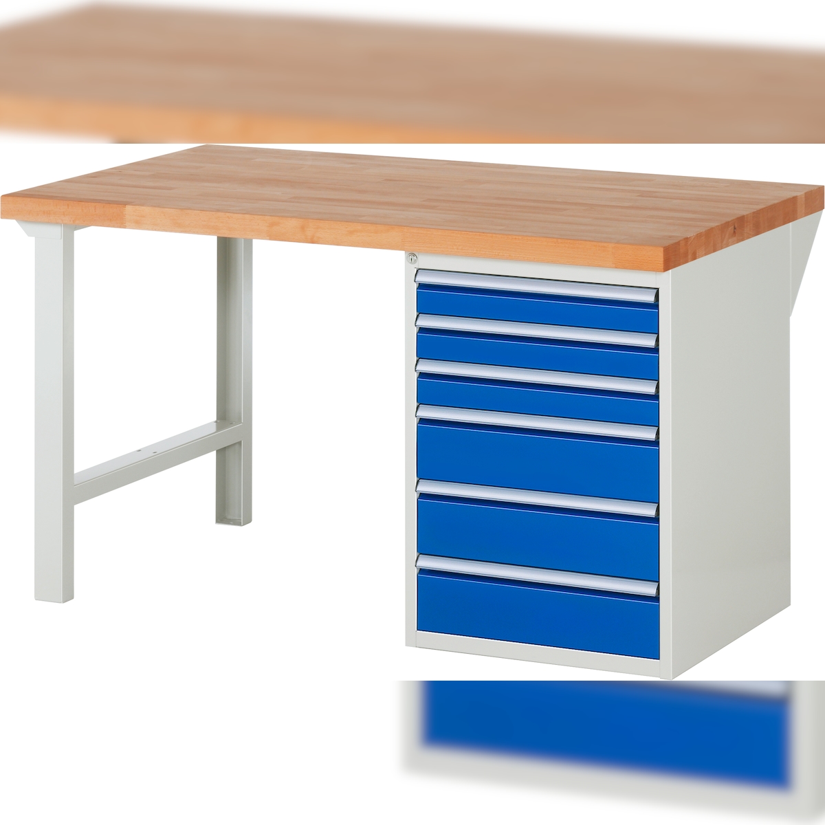 PROREGAL Werkbank Serie 7000 - Modell 7515 | HxBxT 84x150x90cm | 6x Schublade | Schubladenmaße 3x90 + 3x150mm | Lichtgrau | Arbeitstisch Werktisch