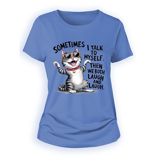 Per donna Maglietta Gatto Lettera Casual Manica Corta Girocollo Top Regolari Quotidiano Stampato Bianco Blu Beige Estate