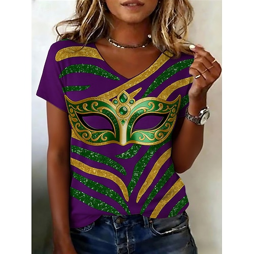 Carnevale Per donna Maglietta Grafico Astratto Vintage Casual Manica Corta Scollo a V Top Regolari Quotidiano Stampato Bianco Viola Estate
