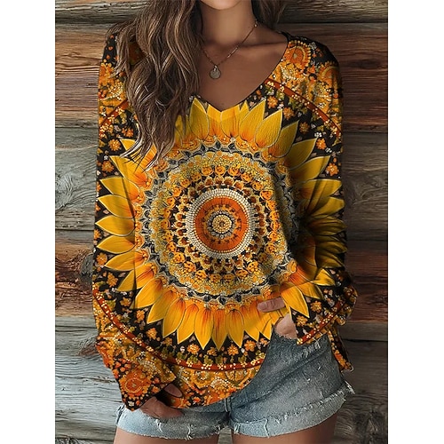 Per donna Maglietta Semplice Vintage Elegante Classico Manica Lunga Girocollo Top Regolari Quotidiano Stampato Blu Nero Bianco Giallo Rosa Primavera Autunno Inverno