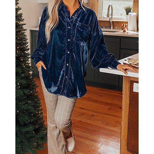 Per donna Blusa Tinta unica Vintage Elegante Classico Manica Lunga Girocollo Top Regolari Quotidiano Bottoni Nero Blu Viola Marrone Verde Primavera Autunno Inverno