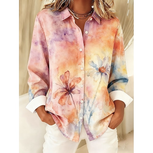 Per donna Camicia Top Eleganti Floreale Grafico Semplice Elegante Signore Classico Manica Lunga Scollo a V Top Regolari Lavoro Quotidiano Ferie Bottoni Stampato Bianco Cachi Grigio Primavera Autunno