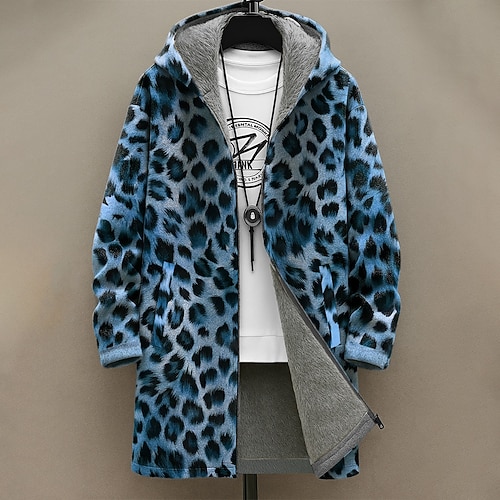 Per uomo Grafico Leopardato Cappotto Invernale Giacca in Pile Cappotto Calore Termico Confortevole Casual Abbigliamento quotidiano Cerniera Tasca Stampa 3D Autunno Inverno Con Cappuccio Manica Lunga