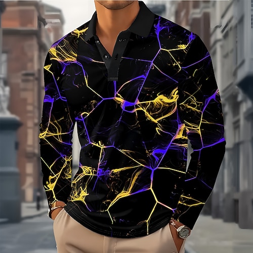 Per uomo Astratto Geometrico Polo Manica Lunga Magliette polo Bavero Casual All'aperto Streetwear Athleisure Abbigliamento quotidiano Stampa 3D Bottoni Primavera Autunno Inverno Rosso Viola Verde