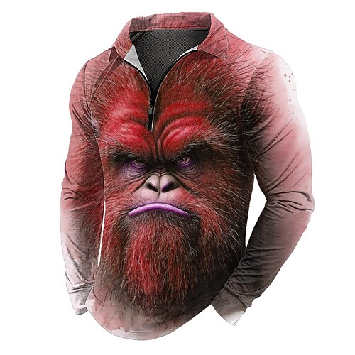 Per uomo Animale Polo con zip Manica Lunga Magliette polo Bavero Casual All'aperto Abito da festa Stampa 3D Primavera Autunno Inverno Rosso Viola Verde
