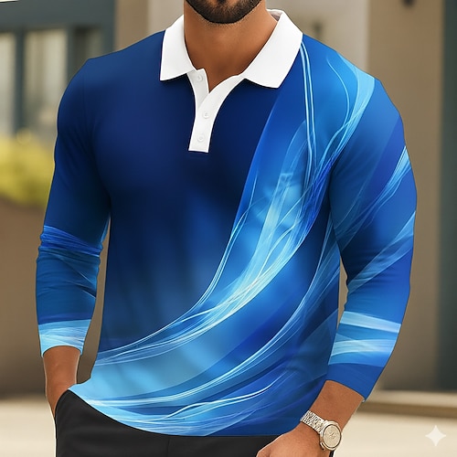 Per uomo Geometrico Polo Manica Lunga Magliette polo Bavero Casual Athleisure Abbigliamento quotidiano Stampa 3D Bottoni Primavera Autunno Inverno Giallo Blu