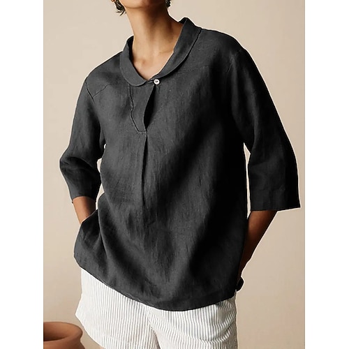 Per donna Blusa Tinta unica Elegante Casual Manica 3/4 Colletto a Camicia Top Regolari Quotidiano Bottoni Blu Nero Rosa Arancione Marrone Estate Primavera Autunno