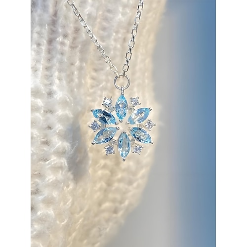 Collana con ciondolo a forma di fiocco di neve da donna con cristalli blu, elegante gioiello invernale per feste di Natale e regali per le feste