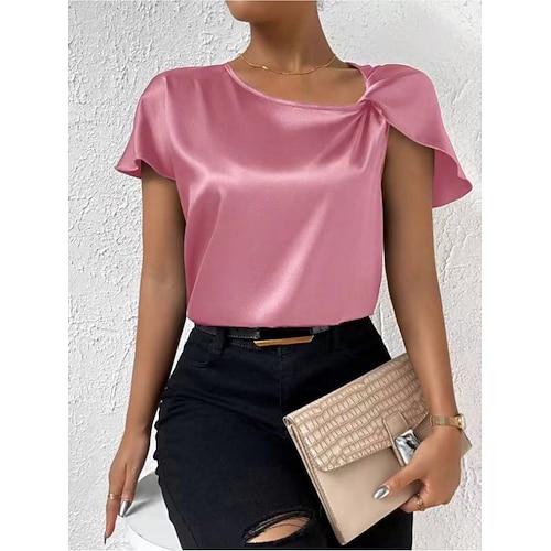 Per donna Maglietta Semplice Elegante Moda Moderno Manica Corta Girocollo Top Regolari Quotidiano Weekend Nero Rosa Blu marino Oro Verde Estate Primavera
