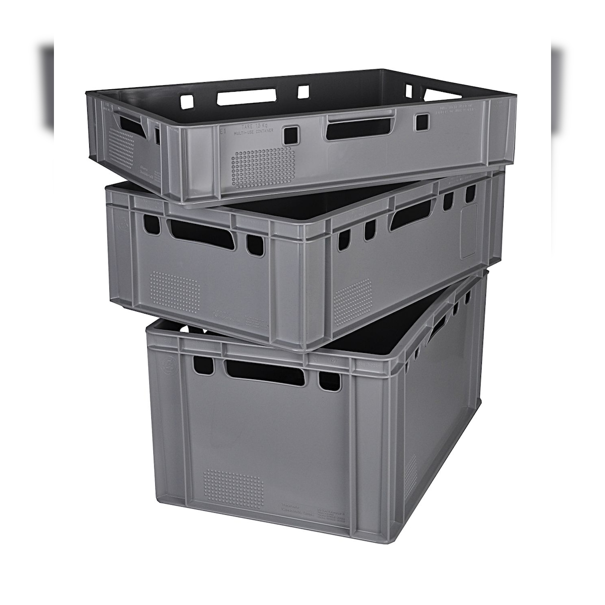 BURI Fleischkisten Kisten Eurobox lebensmittelecht - HDPE Metzgerkiste Box Lagerkiste E3 grau 2 Stück