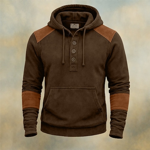 Per uomo Felpa con cappuccio Felpa con cappuccio abbottonata Felpa con cappuccio in pile Verde militare Marrone Con Cappuccio Blocco di colori Semplice Patchwork Blocco di colore Casuale Quotidiano