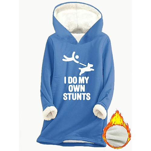 Per donna Felpa con cappuccio Grafico Lettera Caldo Casual Pile Sherpa Manica Lunga Con Cappuccio Top lunghi Streetwear Abbigliamento Quotidiano Casuale Stampato Foderato in pile Rosa scuro Blu Grigio