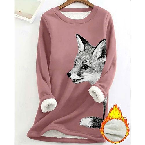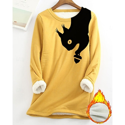 Per donna Felpa Pullover Animale Moda Essenziale Casual Manica Lunga Girocollo Top lunghi Streetwear Abbigliamento Quotidiano Casuale Stampato Foderato in pile Nero Giallo Rosa Rosa scuro Blu Autunno