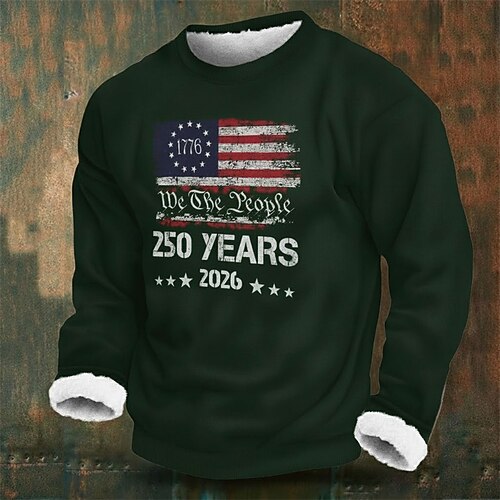 Per uomo Grafico Bandiera Americana Pile Felpa con cappuccio Felpa Streetwear Quotidiano Elegante Classico Casual Girocollo All'aperto Vacanza Uscire Nero Rosso Blu marino Verde scuro Stampa Autunno