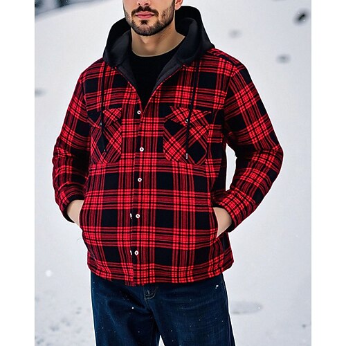 Per uomo Cappotto Invernale Giacca Camicia Giacca in Pile Giacca Casual Casuale Quotidiano Calore Termico Tasca Autunno Inverno Plaid Streetwear Quotidiano Con Cappuccio Regolare Blu Nero Bianco