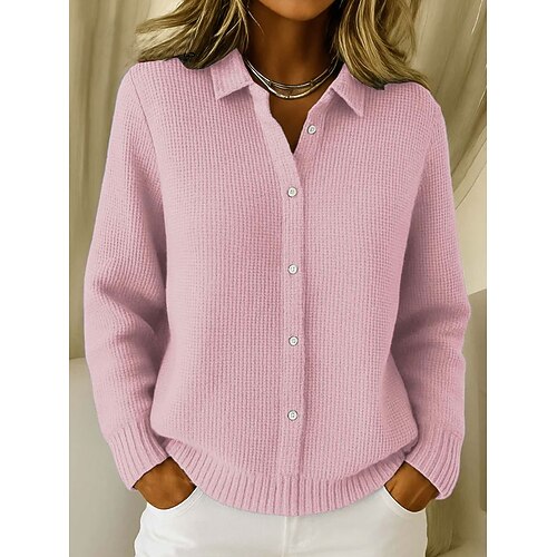 Per donna Felpa Elegante Casual Morbido Colore Puro A Coste Colletto a Camicia Lavorato a maglia Manica Lunga Top Regolari Maglia All'aperto Quotidiano Weekend Blu Rosa Autunno Inverno