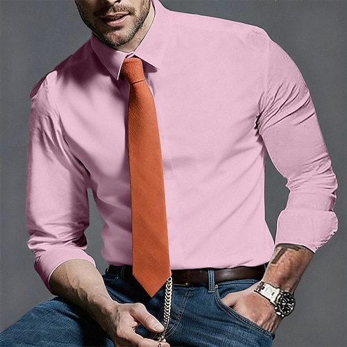 Per uomo Camicia Camicia elegante Semplice Matrimonio All'aperto Rosa chiaro Nero Bianco Verde chiaro Manica Lunga Collo ripiegato Primavera Autunno Abbigliamento Puro