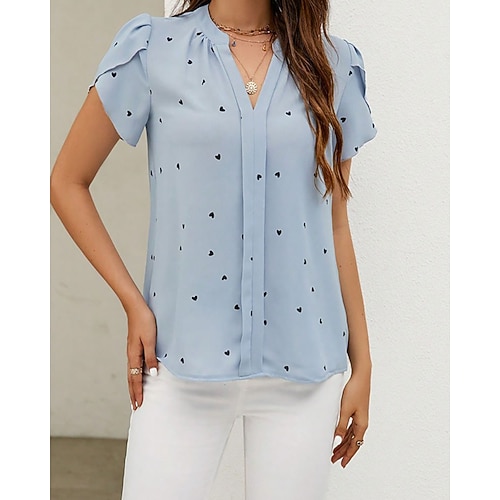 Per donna Camicia Blusa Cuore Vintage Elegante Manica Corta Scollo a V Top Regolari Quotidiano Ferie Uscire Patchwork Stampato Corallo Rosso Nero Verde chiaro Rosa Albicocca Estate Primavera