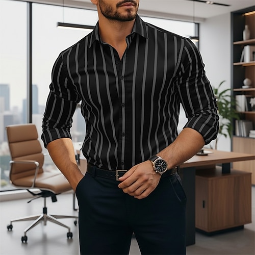 Per uomo Camicia Camicia elegante Camicia con Bottoni Strisce verticali Quotidiano Affari Nero Rosa Blu Verde Manica Lunga Collo ripiegato Tutte le stagioni Abbigliamento Patchwork