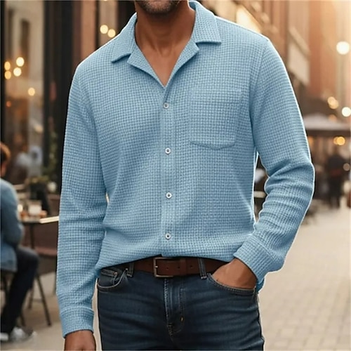 Per uomo Camicia Camicia a nido d'ape Tessuto Camicia casual Nero Rosa Blu marino Verde Grigio Manica Lunga Semplice Colletto cubano Casuale Quotidiano Tasca Frontale Abbigliamento Elegante Moda