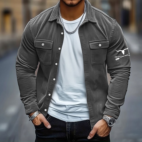 Per uomo Stampa Mucca Camicia di Velluto a Coste Giacca camicia Sopracamicia Manica Lunga Vintage Retrò All'aperto Abbigliamento Quotidiano Autunno Inverno Collo ripiegato Bottonato Caldo Giacca con