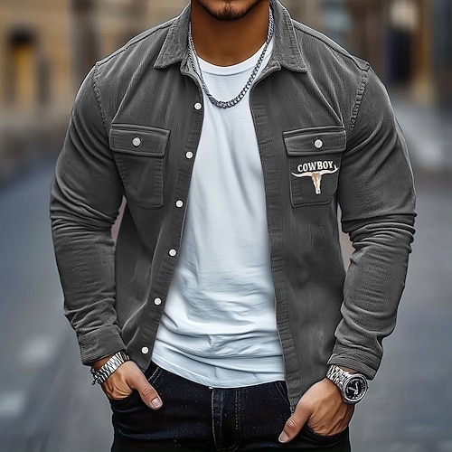 Per uomo Gesù Fede Camicia di velluto a coste Giacca da camicia Sovracamicia Manica lunga Vintage Moda Casual Esterno Da giorno Per eventi Autunno inverno Collo ripiegabile Camicie con colletto