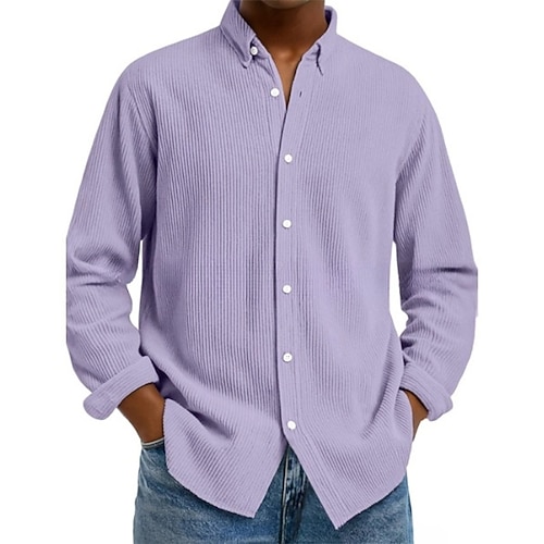 Per uomo Camicia Camicia casual Camicia di Velluto a Coste Camicia con Bottoni Blu Nero Bianco Blu marino Viola Manica Lunga Collo ripiegato Casuale All'aperto Caldo Abbigliamento Vintage Moda Casual