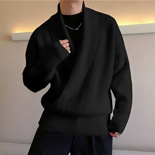 Per uomo Felpa Maglione A Coste Maglia Top Regolari Avvolgere Lavorato a maglia Semplice Collo a scialle Maglieria Moda Casuale Abbigliamento quotidiano Abbigliamento Autunno Inverno Nero Bianco M
