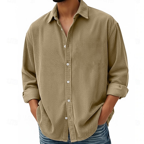 Per uomo Camicia Camicia elegante Camicia button-down Camicia di Velluto a Coste Semplice Matrimonio Uscire Blu Nero Rosso Marrone chiaro Manica Lunga Collo ripiegato Primavera Autunno Abbigliamento