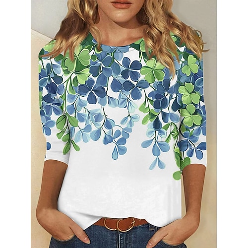 T-shirt da donna per il giorno di San Patrizio Graphic Shamrock Moda Stilosa Classica a maniche lunghe Collo tondo Tops normali Stampa Daily Fine settimana Blu Nero Verde Estate Primavera Autunno