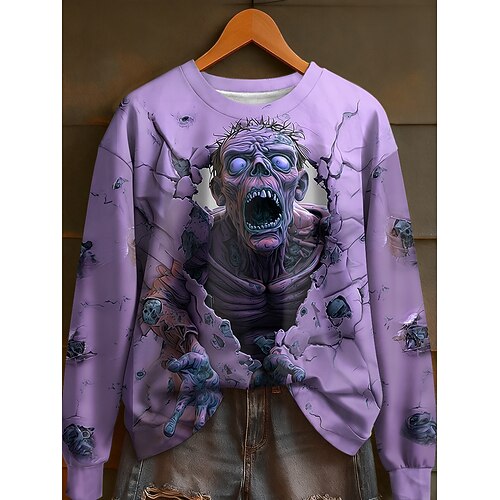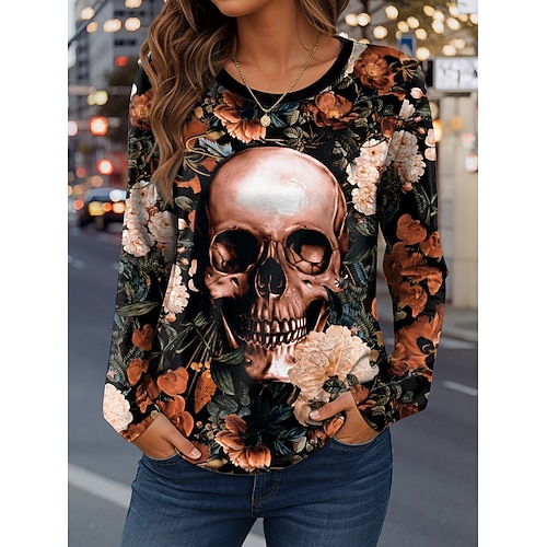 T-shirt da donna teschi grafica vintage moda casual maniche lunghe collo rotondo Tops regolari stampa rosa rossa blu grigia primavera autunno