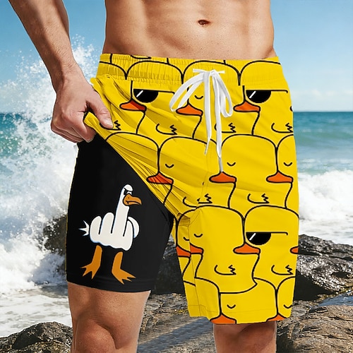 Per uomo Divertente Anatra Dito medio Pantaloncini foderati Pantaloncini da bagno 2 in 1 Pantaloncini da mare Misura del girovita medio Hawaiano Vacanza al Mare Tasche Laterali Con Fodera a