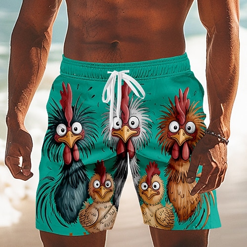 Per uomo Cartoni animati Pulcino Frizzle Chickens Costumi da bagno Pantaloncini da mare Pantaloncini da Surf Misura del girovita medio Hawaiano Divertente Vacanza al Mare Tasche Laterali fodera in