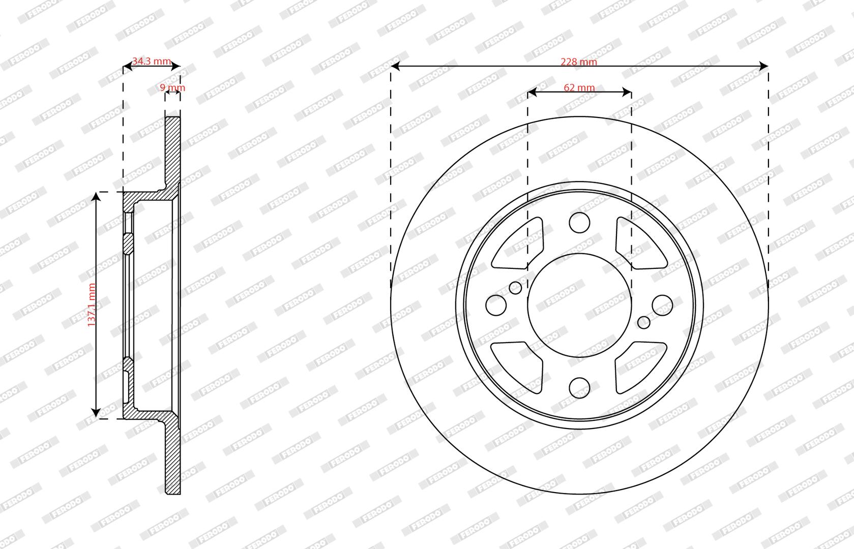 FERODO Bremsscheibe DDF2981C hinten rechts links voll 228mm für SUZUKI 5561152R01 55611M68P00 5561152R00