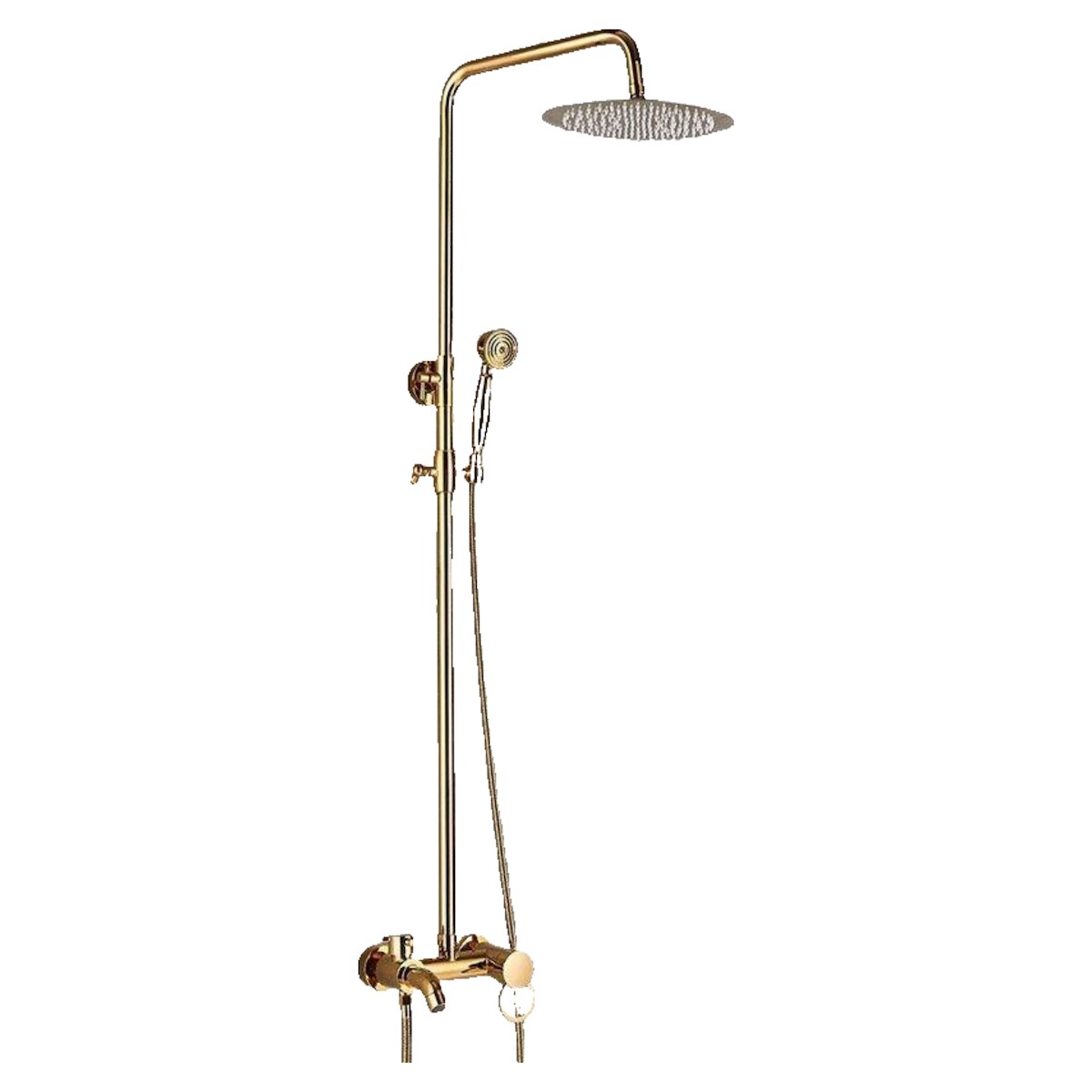 KLARWERK® JANA | Vintage Duscharmatur Set mit Regendusche & Handbrause Gold glänzend | Edelstahl Retro Design Duschsystem | Duschsäule Mischbatterie