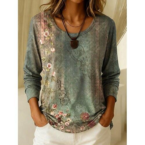Per donna Maglietta Grafico Tribale Vintage Elegante Casual Manica Lunga Girocollo Top lunghi Quotidiano Uscire Weekend Stampato Blu Viola Verde Cachi Primavera Autunno