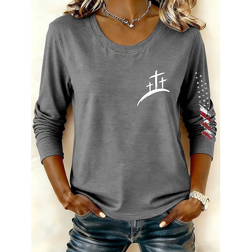 Per donna Maglietta Grafico Vintage Elegante Moderno Manica Lunga Girocollo Top Regolari Quotidiano Weekend Stampato Blu Bianco Rosso Grigio Autunno Inverno