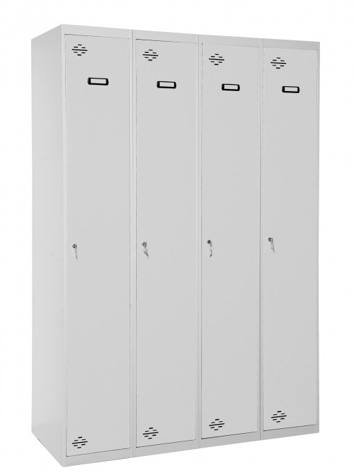 Proregal Spind Simonlocker Single grau 30 |180x120x50 cm | 4 Abteile je 1 Fach | Hebelschloss | Metallspind Kleiderspind Garderobenspind