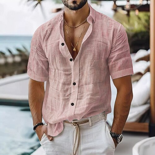 Per uomo Camicia di lino Camicia casual Camicia in cotone e lino Camicia con Bottoni Colore Solido / Tinta Unita Vacanza Abbigliamento quotidiano Bianco Verde chiaro Rosa Blu marino scuro Manica Corta