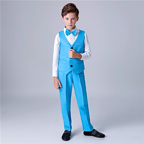 Completo da fedi nuziali per bambini, 4 pezzi camicia pantaloni da ragazzo, abito formale, casual, da esterno, da festa, alla moda, cool, basic, tinta unita, blu, nero, bianco, nylon