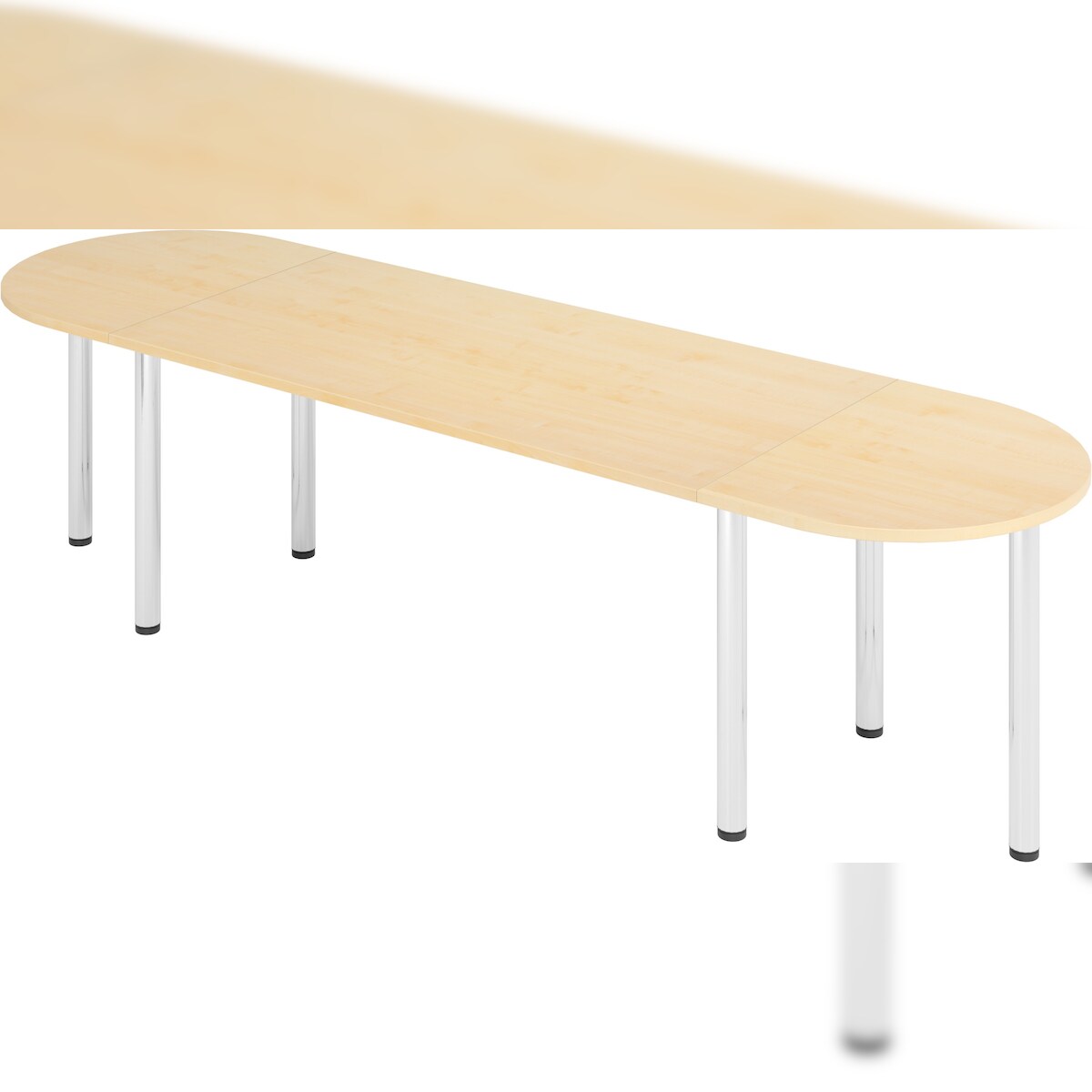 bümö Konferenztisch oval 280x80 cm großer Besprechungstisch in Ahorn, Besprechungstisch mit Chromfüßen, Meetingtisch für 8 Personen, Tisch für