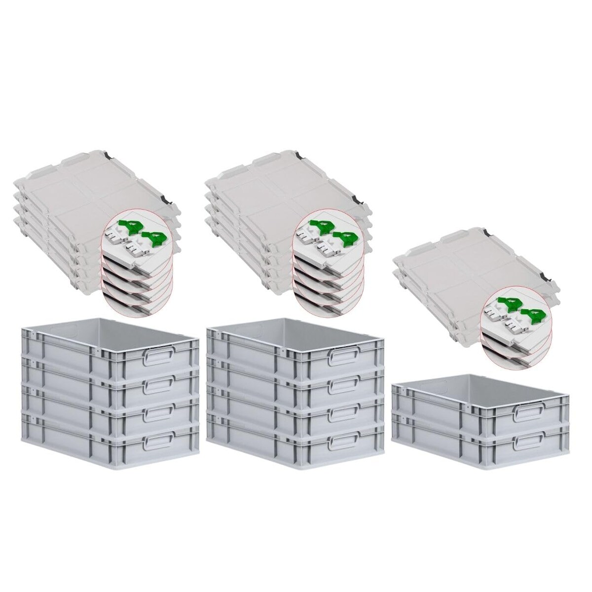 PROREGAL SuperSparSet 10x Eurobox NextGen Economy mit Scharnierdeckel & grünen Verschlüssen, Griffe zu, HxBxT 12x40x60cm, 23L, Eurobehälter, Box