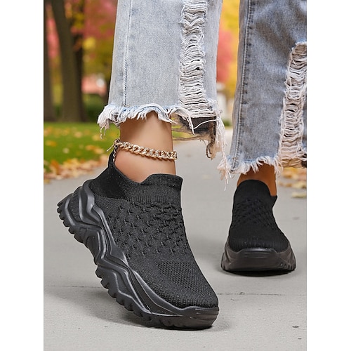 scarpe da ginnastica slip-on flyknit arancioni da donna – scarpe da passeggio leggere in mesh traspirante con suola spessa per il tempo libero e lo sport