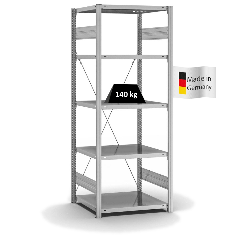 PROREGAL Fachbodenregal Stecksystem | Grundregal | HxBxT 200x75x60cm | 5 Ebenen | Fachlast 140 kg | Einseitig nutzbar | Verzinkt