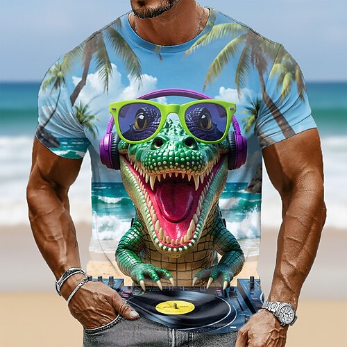 Maglietta da uomo con coccodrillo da dj, 3D realistico, alligatore che suona musica, giradischi, abbigliamento da spiaggia tropicale, s m l xl xxl xxxl