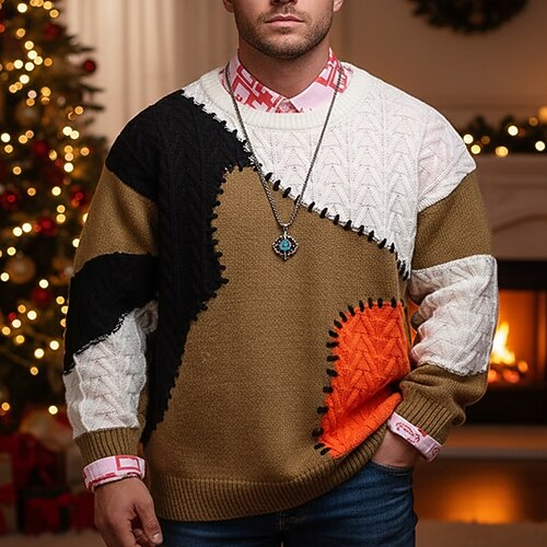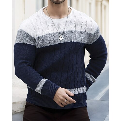 Per uomo Maglione Maglione a maglia A Coste Maglia Top Regolari Patchwork Lavorato a maglia Blocco di colori Girocollo Moda Essenziale Vacanza Abbigliamento quotidiano Abbigliamento Autunno Inverno