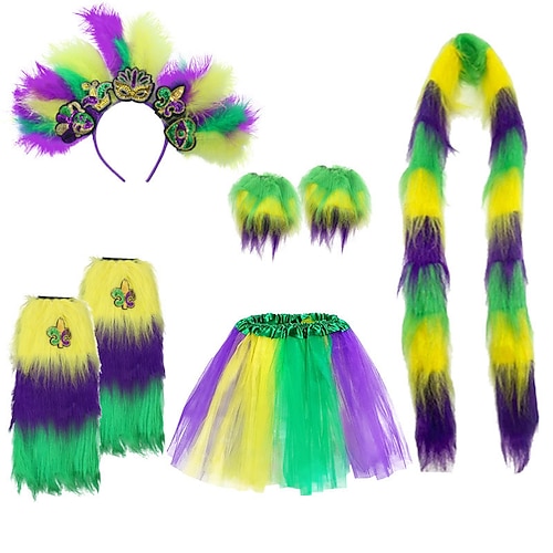 Accessori Samba Carnevale 2026 Rio Carnevale 3 pezzi Set Costume Donna Piume Mantello Piume Gotico Gonna Mini Polsini di Pizzo Lunghi Costume per Festival in Brasile