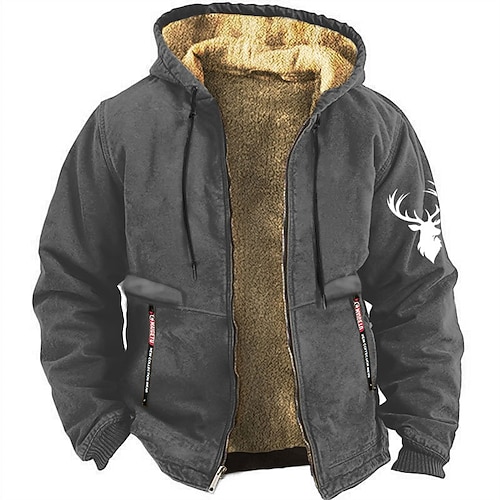 Per uomo Cervo Pile Felpa con Cappuccio Felpa Quotidiano Classico Vintage Retrò Manica Lunga Girocollo All'aperto Casa Caccia Nero Borgogna Blu Marrone Verde militare Coulisse Autunno Inverno