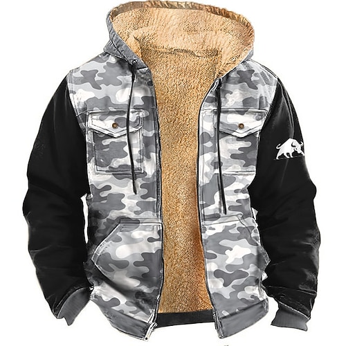 Per uomo Mimetico Pile Felpa con Cappuccio Giacca di pelle Felpa Moda Cool Quotidiano Vintage Retrò Manica Lunga Con Cappuccio Caccia Blu Marrone Verde Grigio Cerniera Tasca Autunno Inverno